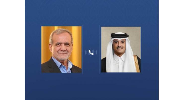 En una conversación telefónica con el emir qatarí, sheij Tamim bin Hamad Al Thani, Pezeshkian declaró que el propósito de la llamada era tranquilizarlo a él y al estimado pueblo de Qatar tras el ataque de represalia de Irán contra la base aérea estadounidense de Al Udeid.