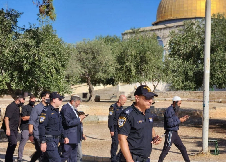 En una provocativa exhibición de extremismo, el ministro de Seguridad Nacional israelí, Itamar Ben-Gvir, flanqueado por más de 1300 colonos, irrumpió en el recinto de la mezquita de Al-Aqsa la mañana del domingo. La incursión, que tuvo lugar bajo fuerte protección policial, coincidió con la conmemoración israelí de la “Destrucción del Templo”.