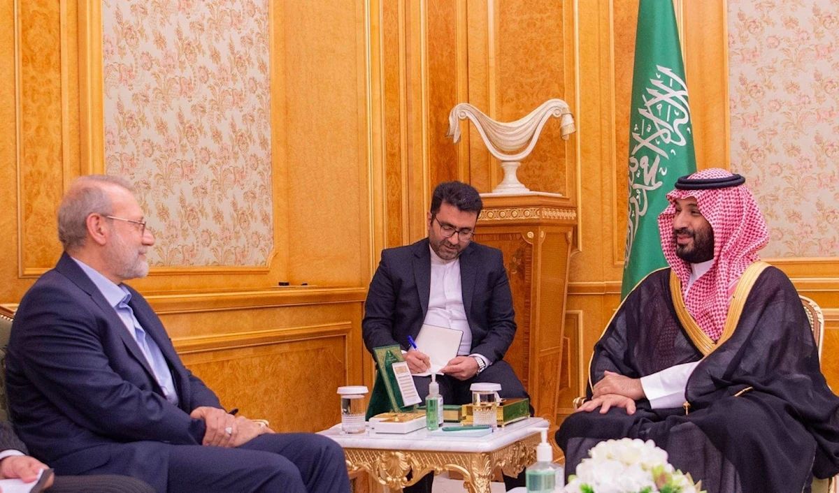 El príncipe heredero saudí, Mohammed bin Salman, conversó este martes sobre los acontecimientos regionales con Ali Lariyani, secretario general del Consejo Supremo de Seguridad Nacional de Irán. Esto tuvo lugar durante una reunión entre Bin Salman, Lariyani y la delegación que lo acompañaba en su oficina del Palacio Al-Yamamah en Riad, donde revisaron las relaciones bilaterales entre ambos países.