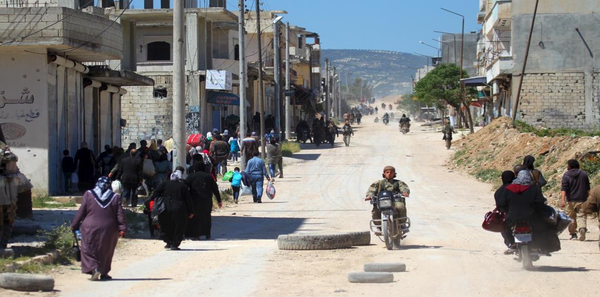 Cientos de civiles abandonaron las áreas controladas por los rebeldes del este de Idleb durante el fin de semana para alcanzar las líneas del gobierno cerca del aeropuerto de Abu Dhuhur.