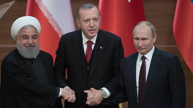 1. De hecho, esta cumbre ofrece la oportunidad de poner fin a los terroristas que operan en la provincia siria de Idleb en coordinación con el gobierno sirio. También garantizará la unidad territorial de Siria frente a los proyectos de división patrocinados por Washington y Tel Aviv. Parece que gracias a la cooperación entre Irán, Rusia y Turquía, todos los complots de EEUU se verán frustrados.