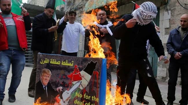 En Cisjordania y la Franja de Gaza, los palestinos salieron a las calles para condenar la conferencia, que tendrá lugar los días 25 y 26 de junio en Manamá, durante la cual se presentó el componente económico del “acuerdo del siglo”. Los manifestantes palestinos quemaron las efigies de Donald Trump como protesta contra el llamado plan de paz de EEUU para el conflicto israelí-palestino.