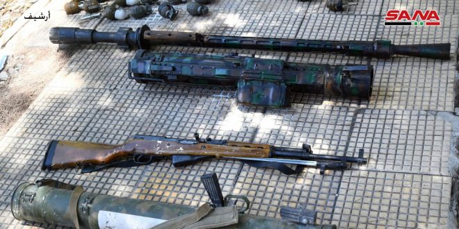 Desde que la provincia de Damasco fue declarada libre del terrorismo en mayo del 2018, las autoridades competentes han hallado grandes cantidades de armas y municiones remanentes de los terroristas en varias áreas.