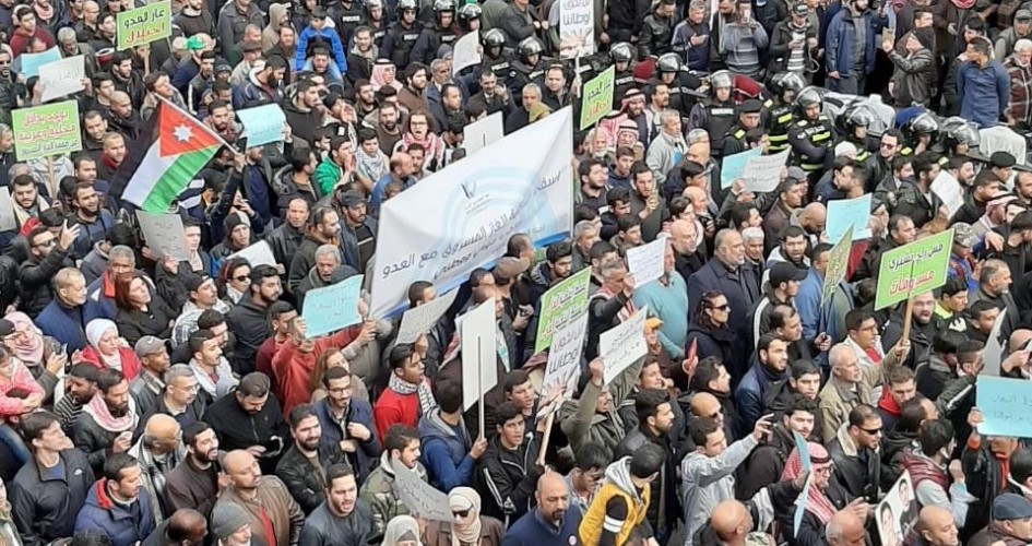Los manifestantes se reunieron frente a la Mezquita de Abu Ayyub al Ansari en el barrio de Abdun de la capital, Ammán, después de las oraciones del viernes al mediodía en una protesta organizada por la Alianza Nacional Contra el Acuerdo del Siglo de Trump, y marcharon hacia la misión diplomática estadounidense, señaló el servicio en árabe de la agencia oficial de noticias Anadolu de Turquía.
