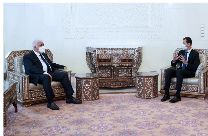 El presidente Bashar al Assad, recibió este miércoles un mensaje del primer ministro iraquí, Mustafa al Kadhimi, el cual fue entregado por Faleh al Fayyad, enviado del Al Kadhimi y jefe de las Fuerzas de Movilización Popular (Hashid al Shaabi).