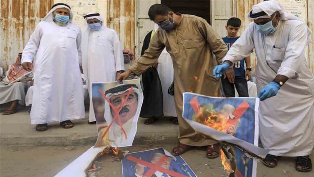 Otros portaban banderas palestinas, afirmando que la postura de Manamá hacia Tel Aviv y la cobertura favorable de la normalización por parte de algunos medios de comunicación no servirán para representar a la opinión pública de Bahrein.