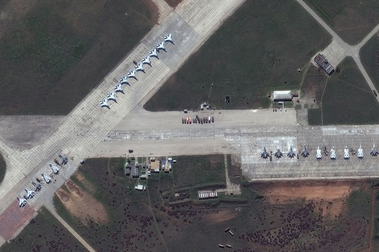 El sitio Avia.Pro publicó un vídeo donde se veía una gran cantidad de aviones de combate desplegados en uno de los aeródromos militares en Crimea. Luego se supo que los cazas Su-27 y Su-35 vistos en el vídeo son solo una pequeña parte los de aviones de combate y bombarderos desplegados en el territorio de Crimea. En total, se desplegaron al menos 50 cazas y bombarderos en Crimea. Esta cantidad de aviones de combate es más que suficiente para no solo garantizar la protección de la península, sino también para derrotar por completo a los barcos de los países de la OTAN desplegados en el Mar Negro y destruir las bases navales de la OTAN en la zona costera.