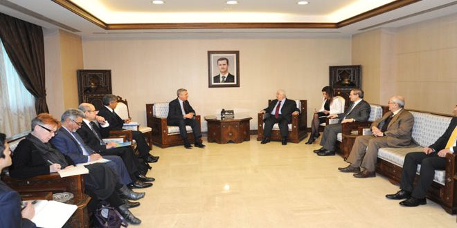 El jefe de la diplomacia siria expresó su aprecio a los esfuerzos realizados por la Comisión en colaboración con el gobierno sirio en la entrega de la ayuda y satisfacer las necesidades humanas.