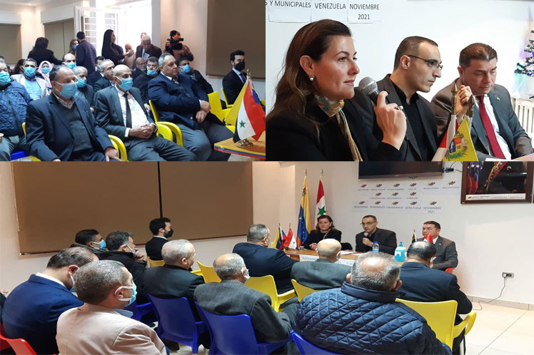 A su vez, Joaquin Gómez, encargado de negocios de la embajada de Venezuela en Siria, ofreció una explicación detallada sobre el proceso electoral y las acciones hostiles que acompañaron el mismo y el éxito que tuvo a pesar de todas las presiones.