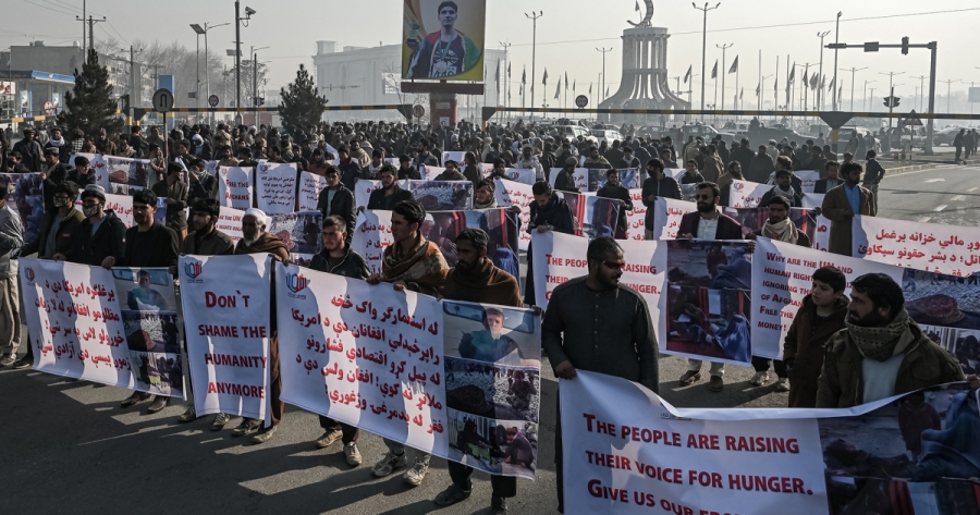 Se organizaron manifestaciones el martes 15 de febrero en las provincias de Kabul, Nangarhar, Maidan y Mazar-e Sharif. Miles de personas marcharon en varias ciudades de Afganistán para protestar contra la decisión del presidente estadounidense de embargar 3.500 millones de dólares de reservas del Banco Central Afgano situados en EEUU, en particular para indemnizar a las víctimas de los atentados del 11 de Septiembre de 2001.