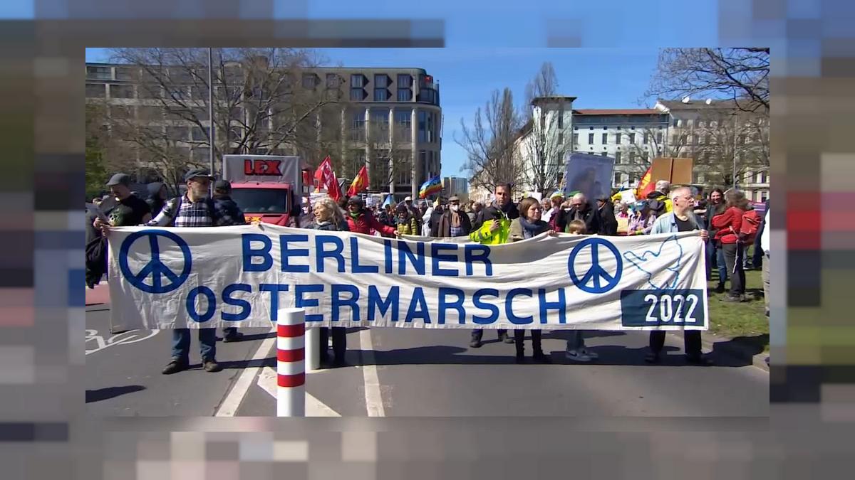 Los participantes en la capital, Berlín, llenaron las calles el sábado con pancartas que condenaban el suministro de armas a Ucrania.