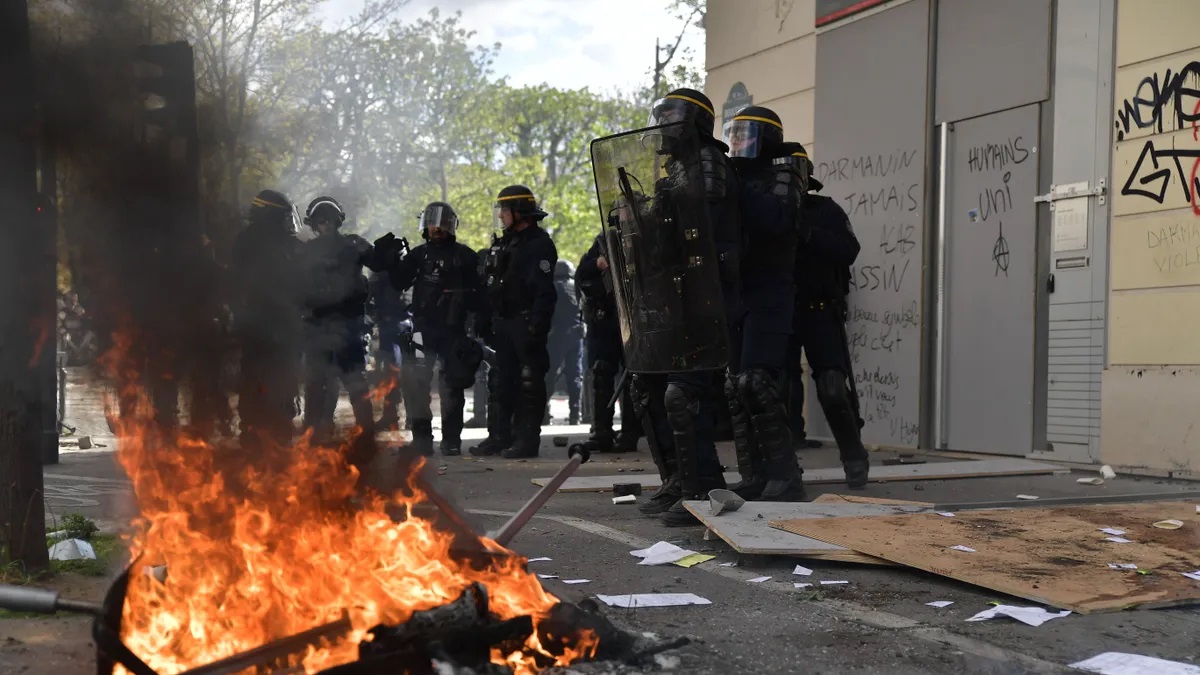 Los disturbios e incendios estallaron en varias ciudades, incluida París, donde algunos manifestantes prendieron fuego brevemente al toldo de un restaurante apreciado por el presidente.