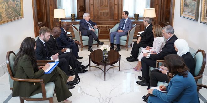 El presidente sirio, Bashar Assad, discutió el lunes con el secretario general adjunto de Asuntos Humanitarios de la ONU y coordinador de ayuda de emergencia, Martin Griffiths, la movilización de esfuerzos para apoyar los proyectos de recuperación temprana y el regreso de los refugiados sirios, y el mantenimiento del archivo de refugiados dentro de un marco humanitario y moral.
