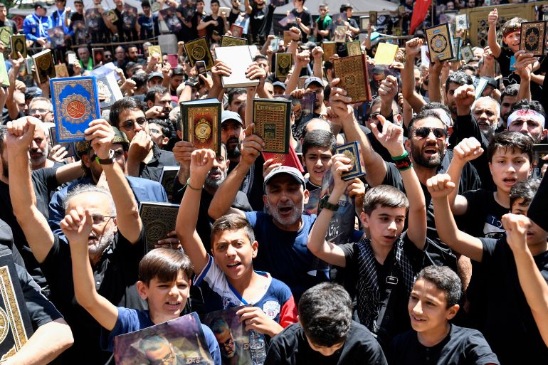 En respuesta al llamamiento del secretario general de Hezbolá, Sayyed Hassan Nasralá, decenas de miles de fieles realizaron mezquitas frente a las mezquitas en el Líbano después de realizar las oraciones del viernes para protestar contra la profanación del Sagrado Corán en Suecia.