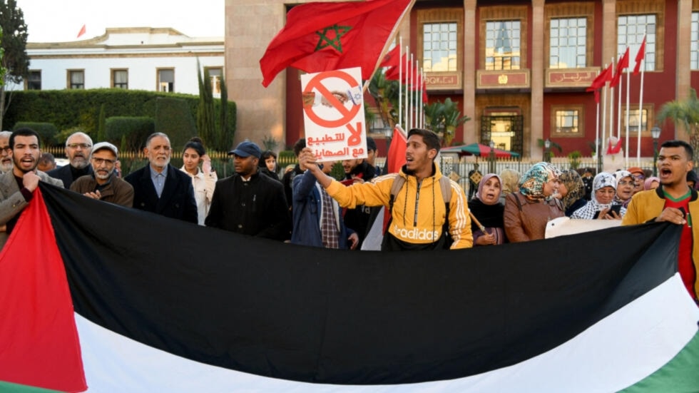 Los marroquíes también salieron a las calles el domingo en Rabat en una manifestación de un millón de personas, rechazando la normalización, apoyando a Palestina, y exigiendo el cierre de la oficina de enlace sionista en Rabat.