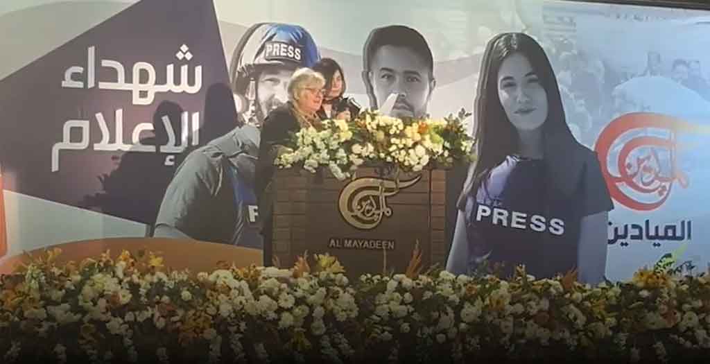 En su homenaje a la periodista Farah Omar, el camarógrafo Rabih Al-Maamari y el colaborador Hussein Aquil, la también comunicadora convocó a exigir la verdad, esa que defiende Al Mayadeen y sus reporteros.