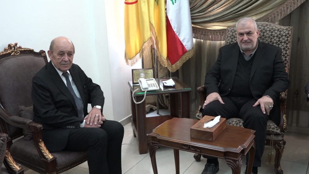 El jefe del bloque Lealtad a la Resistencia, el diputado Mohammad Raad, recibió el jueves al enviado presidencial francés, Jean-Yves Le Drian, en la sede del bloque en Haret Hreik.